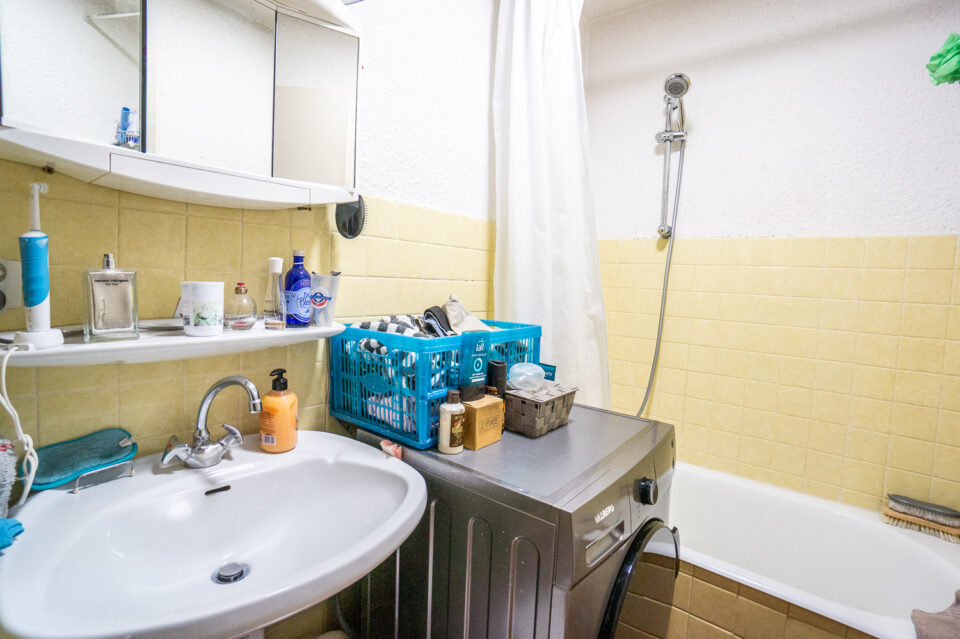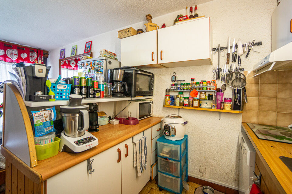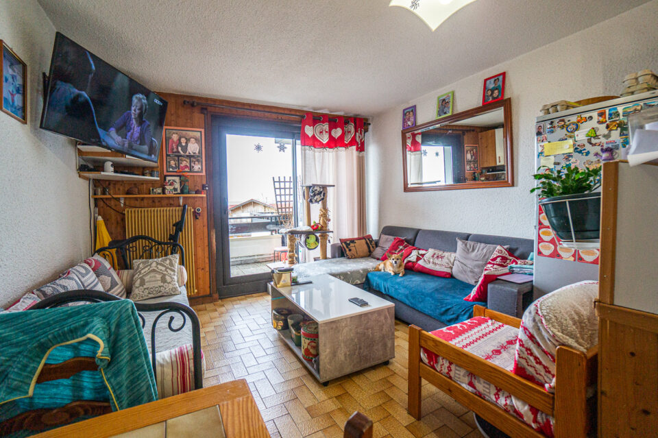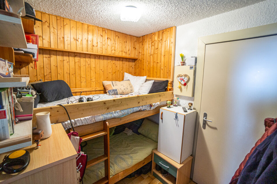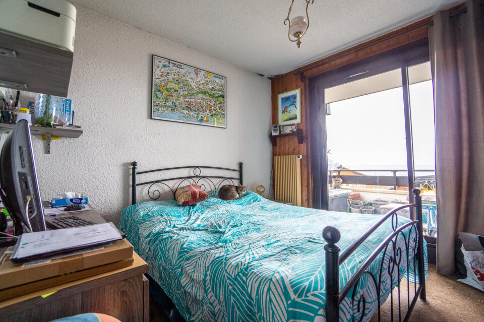 – Un appartement de type 2 avec un espace rangement dans l’entrée mais qui pour l’instant accueille 2 lits superposés, un grand séjour cuisine avec une belle terrasse garantissant du soleil dans l’après midi et des couchers de soleil somptueux sur le jura ,une salle d’eau et un toilette.